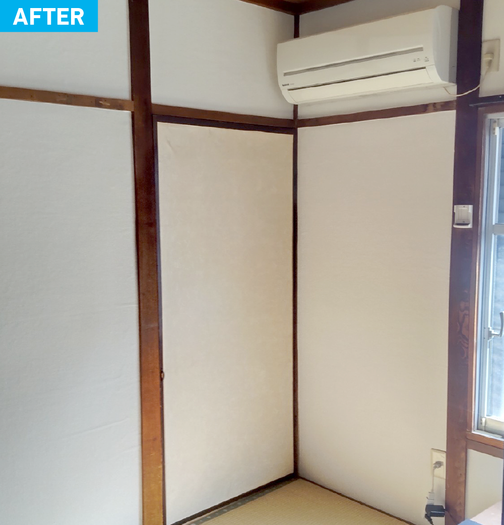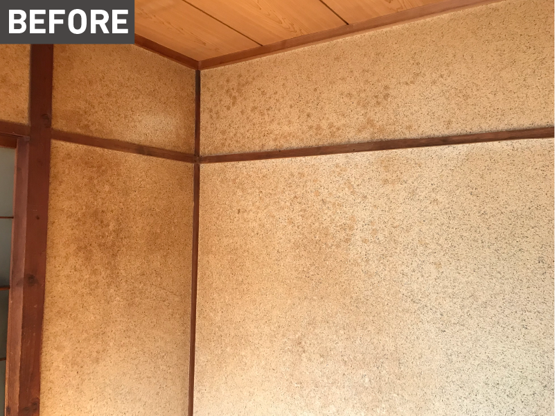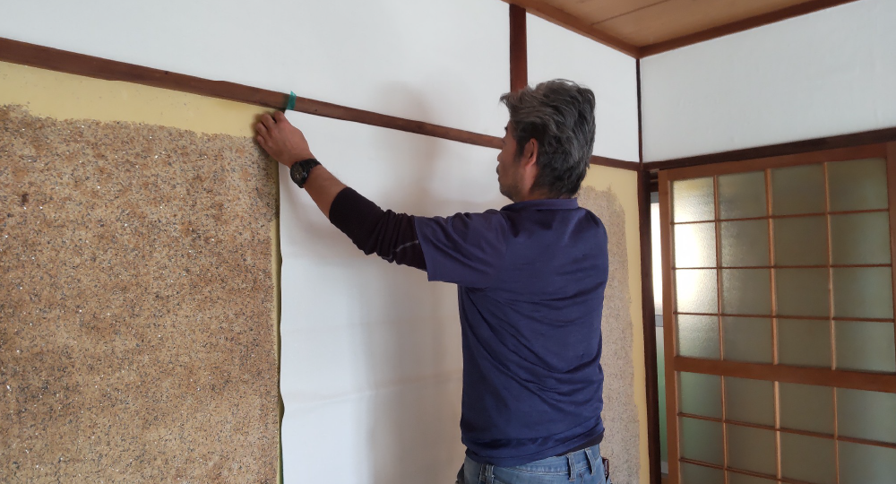 土壁部分を下処理した後、新品のクロスを貼ります。