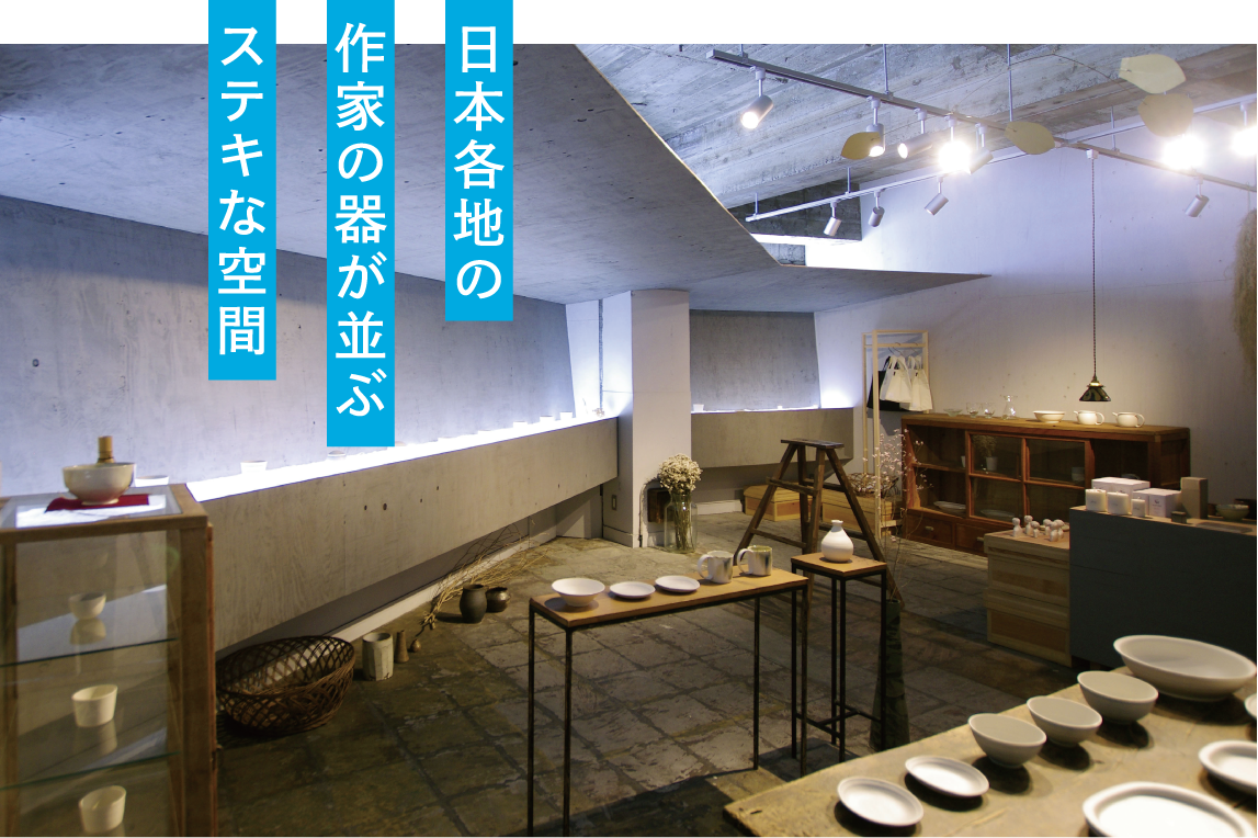 20〜40代の若手作陶家の作品を中心に取り扱っています。店主自ら現地に赴き、作家さんとの親交を深めながら買い付けてくるので、作品にまつわるエピソードなどの知識が豊富です。作陶展も月1くらいのペースで開催。