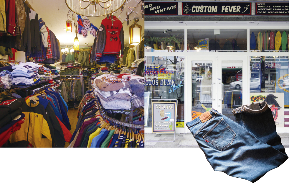 CUSTOM FEVERさんの二号店。メンズのヴィンテージアイテムがメインの一号店に比べて、90年代のアイテムが中心でレディースやアクセサリーなども豊富に揃っています。一見売り物に見えない照明などのインテリアも実は販売していたり。