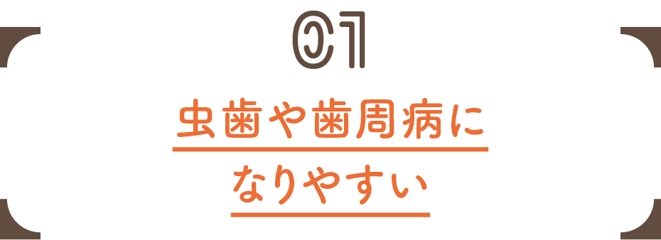 口で息を吸ったり吐いたりするだけなのに、なぜ虫歯や歯周病などになるのか、不思議に思いませんか。実は口呼吸をすると口の中が乾燥してしまうことが、虫歯や歯周病の原因となるのです。口の中で分泌される唾液には、細菌を退治したり、汚れを洗い流したりする働きがありますが、口呼吸により口腔内が乾燥すると、唾液の量が減ってしまいます。そのため、虫歯菌や歯周病の原因菌が繁殖しやすくなり、虫歯や歯周病などにかかりやすくなるのです。