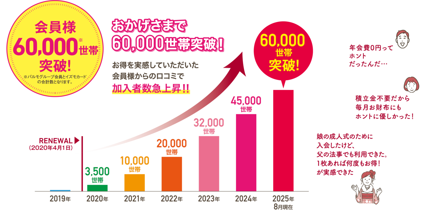 当然のことながら圧倒的な支持をいただき、毎年10,000件以上の会員様が増加しています。