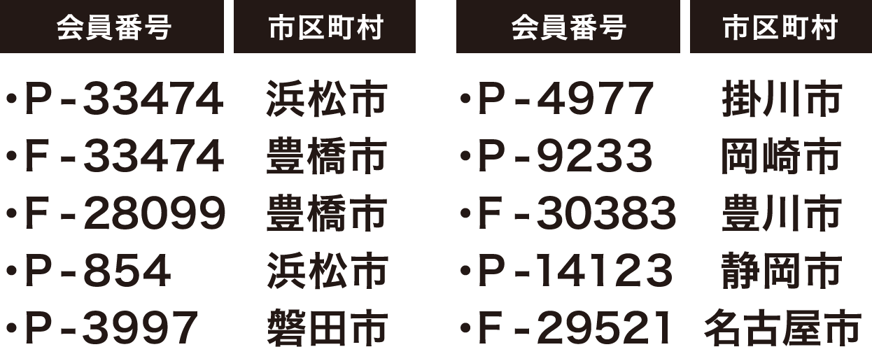 当選番号は、パルモ・イズモの 『会員証』裏面の