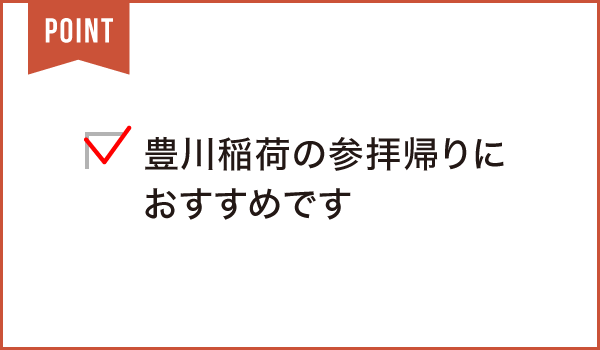 豊川稲荷の門前町に位置する鰻と田楽の名店。店頭に並んだ鰻の生簀や稲荷寿司など味わえます。先代から受け継がれた八丁味噌を使った味噌だれがたっぷりとかかっている田楽は絶品です。鰻まぶしきしめんや田楽きしめん、稲荷寿司など、豊富なメニューも魅力的です。 曽我の軒 ☎ 0533-86-2688 豊川市門前町46[ 営業時間 ] 11:00〜14:30、17:00〜19:30[ 定休日 ] 不定休