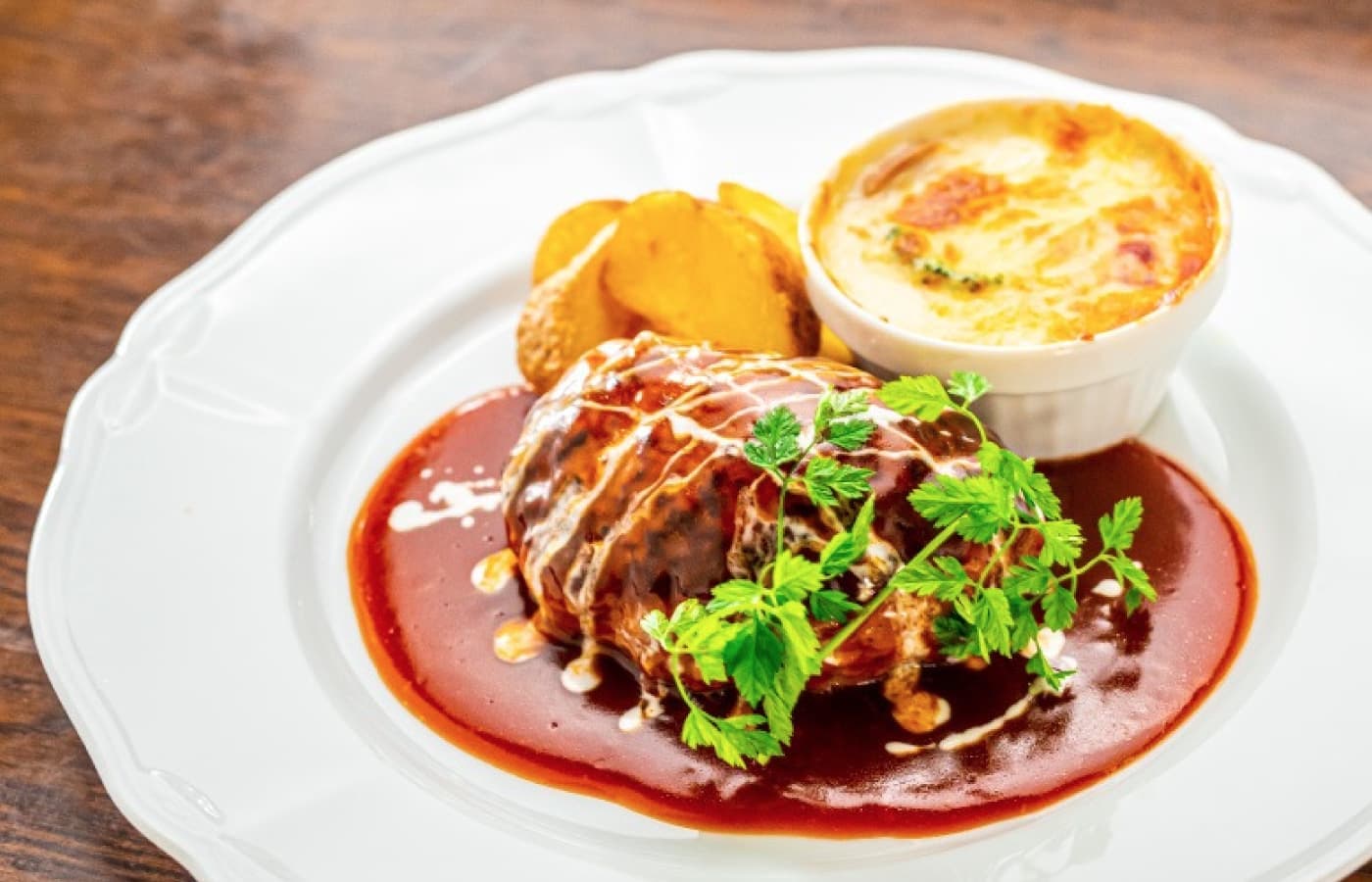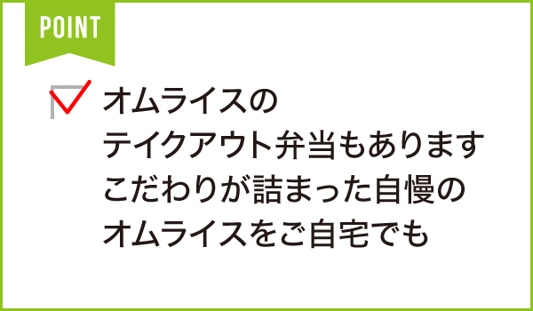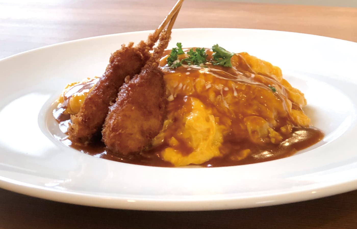 オムライスはブランド卵『めぐみ卵』を食材に使用しており、色鮮やかな黄色の卵の中にはビーフシチュー用に煮込んだお肉がたっぷり入った贅沢オムライスとなっています。更に、串ヒレカツが付いており、創業から変わらない当店の味をお楽しみいただけます。オムライス以外にも、豊富な洋食メニューに25種類以上のサラダバーや25種類以上のドリンクバー・ソフトクリームバーなど…モーニングからディナーまで、どの時間帯でもお楽しみいただけます!