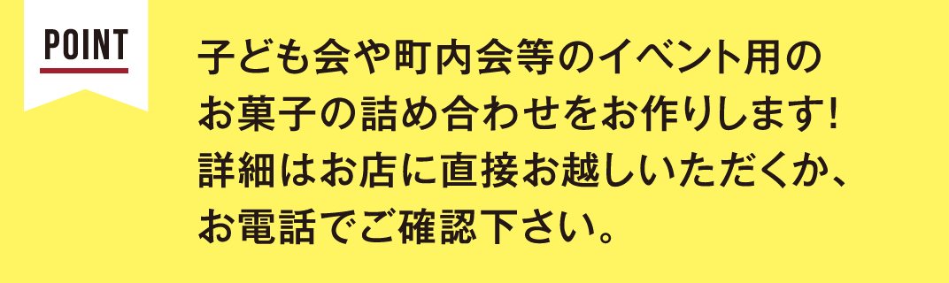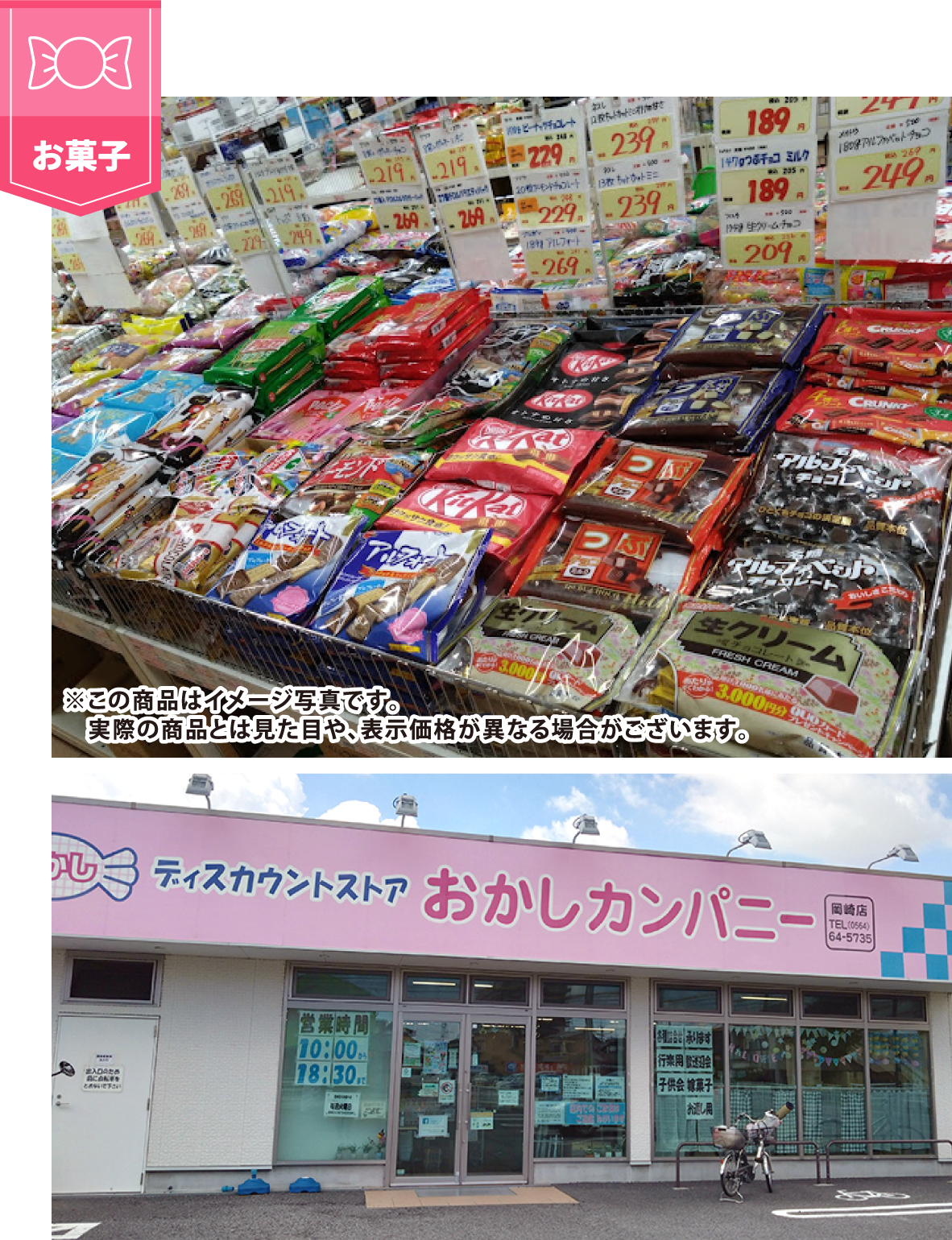 おかしカンパニーでは定番の商品から定価の半額以下の商品まで幅広く取り揃えています。 嫁菓子や詰合せ菓子等もお客様ご要望に合わせてお作りしています。お客様が来て、見て、楽しめる店づくりを心がけています。 お菓子をお買い求めの際は是非おかしカンパニーへご来店ください。 スタッフ一同、皆様のご来店を心からお待ちしております!