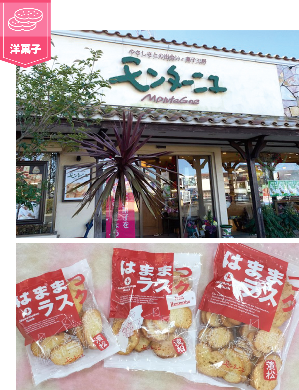 こだわりのフランスパンを絶妙な厚さにスライスし発酵バターを塗りグラニュー糖をまぶして全て手作りで焼き上げた、さくっと香ばしいはままつラスクに生クリームやフルーツのデコレーションケーキ、チョコレートケーキやチーズケーキなど心弾むおいしいスイーツをお届けしています。