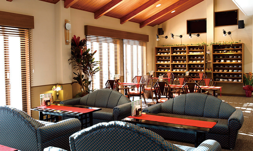 300種類以上のカップの中から好みのものを選んで、コーヒーや紅茶をいただけます。各種ドリンクや季節限定スイーツなどのカフェメニューも充実。定期的に開かれる陶芸教室やコンサートなどのイベントでアートや音楽も楽しめます。